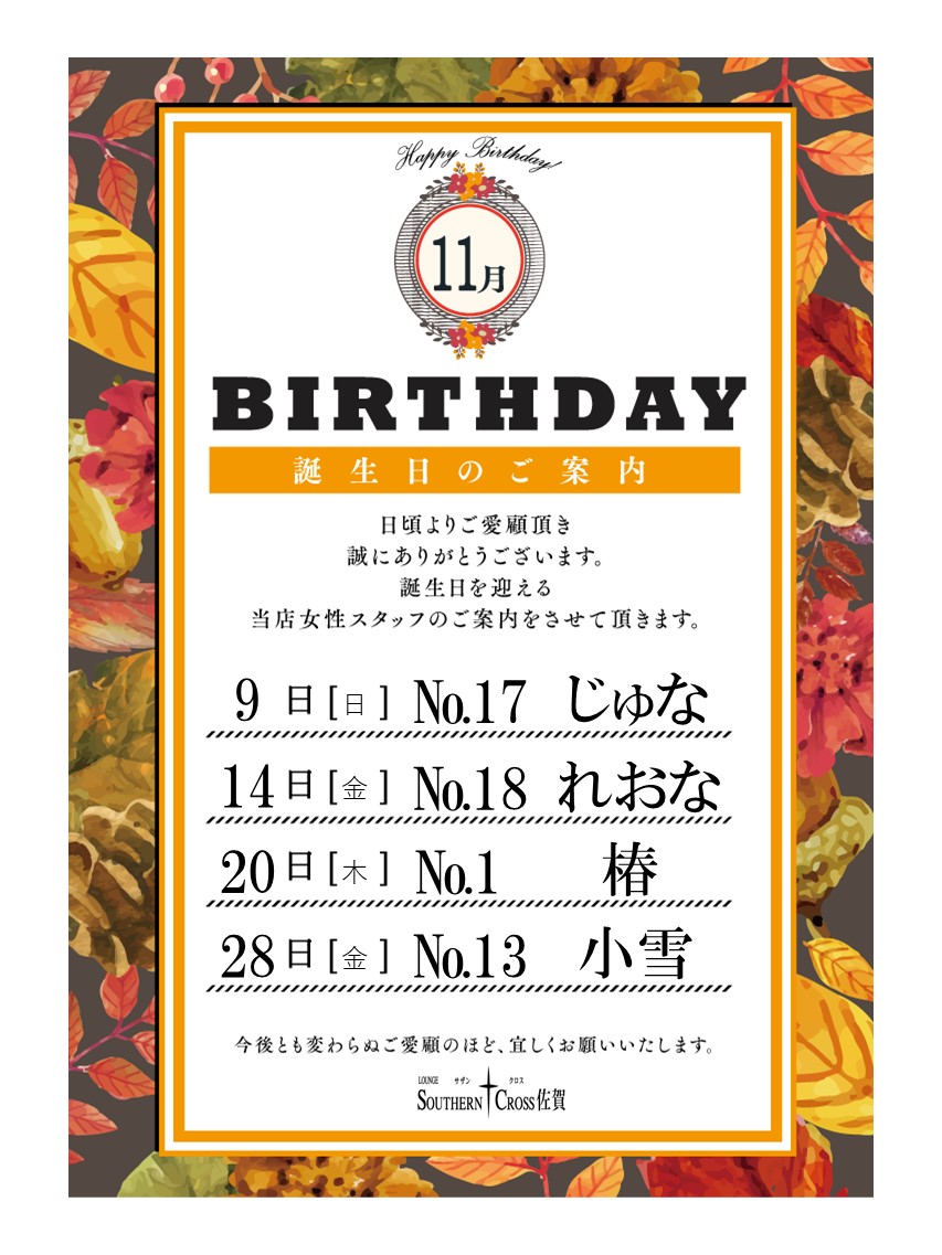 ラウンジ サザンクロス佐賀の誕生日
